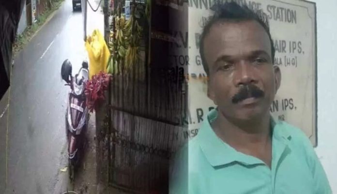 രാവിലെ 8.30 മണിയോടെ രവീന്ദ്രൻ വർക്ക്ഷോപ്പിലേക്ക് ജോലിക്ക് പോയതായിരുന്നു. സാവിത്രി തനിച്ചായിരുന്നു വീട്ടിലുണ്ടായിരുന്നത്. പെൺമക്കളായ രണ്ടു പേരും ഭർത്യ വീടുകളിലാണ് താമസം. അടുക്കളയിലെ ജോലിക്കിടെ 10.30 മണിയോടെ വീടിൻ്റെകോളിംഗ് ബെല്ല് അടിക്കുന്നത് കേട്ട് വാതിൽ തുറന്നപ്പോൾ നീലമഴക്കോട്ടിട്ട കവർച്ചക്കാരൻ വീടിനകത്ത് കയറി വാതിൽ കുറ്റിയിട്ട് വീട്ടമ്മയുടെ കഴുത്തിന് കത്തി വെച്ച് കൊല്ലുമെന്ന് ഭീഷണിപ്പെടുത്തുകയും വായിൽ കൈകുത്തി തിരുകി കഴുത്തിലണിഞ്ഞ രണ്ടേകാൽ പവന്റെ മാലയും കമ്മലും കൈക്കലാക്കിയ ശേഷം വീടിനകത്ത് തള്ളിയിട്ട് കടന്നു കളയുകയായിരുന്നു. വായിൽ നിന്നും രക്തം വന്ന് അവശയായ സ്ത്രീ നിലവിളിച്ചതിനെ തുടർന്നാണ് നാട്ടുകാർ വിവരമറിയുന്നത്. തുടർന്ന് പയ്യന്നൂർപോലീസിൽ വിവരമറിയിക്കുകയായിരുന്നു. സ്ഥലത്തെത്തിയ പോലീസ് അന്വേഷണ ത്തിൽ കവർച്ചക്കാരൻ കൊണ്ടുവന്ന കത്തി വീട്ടിൽ ഉപേക്ഷിച്ച നിലയിൽ കണ്ടെത്തിയിരുന്നു. വീട്ടമ്മയുടെ പരാതിയിൽ കേസെടുത്ത പോലീസ് ക്രൈംസ്ക്വാഡ് അംഗങ്ങളുടെ സഹായത്തോടെയാണ് കവർച്ചക്കാരനെ മണിക്കൂറുകൾക്കുള്ളിൽ പിടികൂടിയത്.