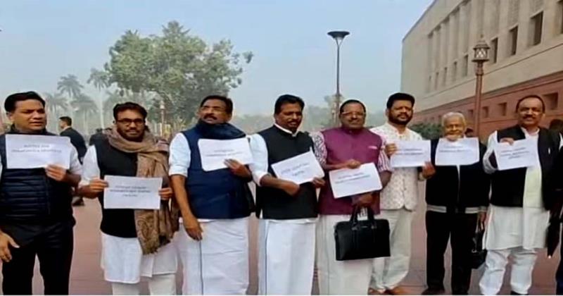 ശബരിമല സ്വര്‍ണക്കൊള്ളയില്‍ പാര്‍ലമെന്റിന് മുന്നില്‍ യുഡിഎഫ് എംപിമാരുടെ പ്രതിഷേധം